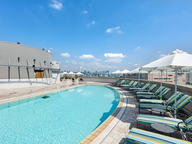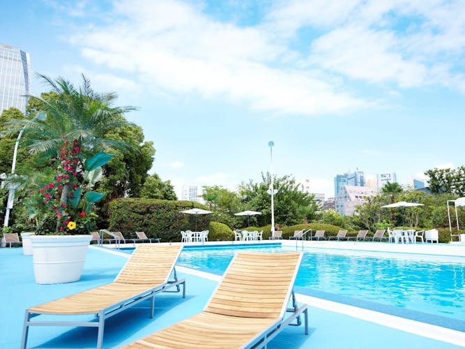 昼間は穏やかなガーデンプールを営業している「東京プリンスホテル」